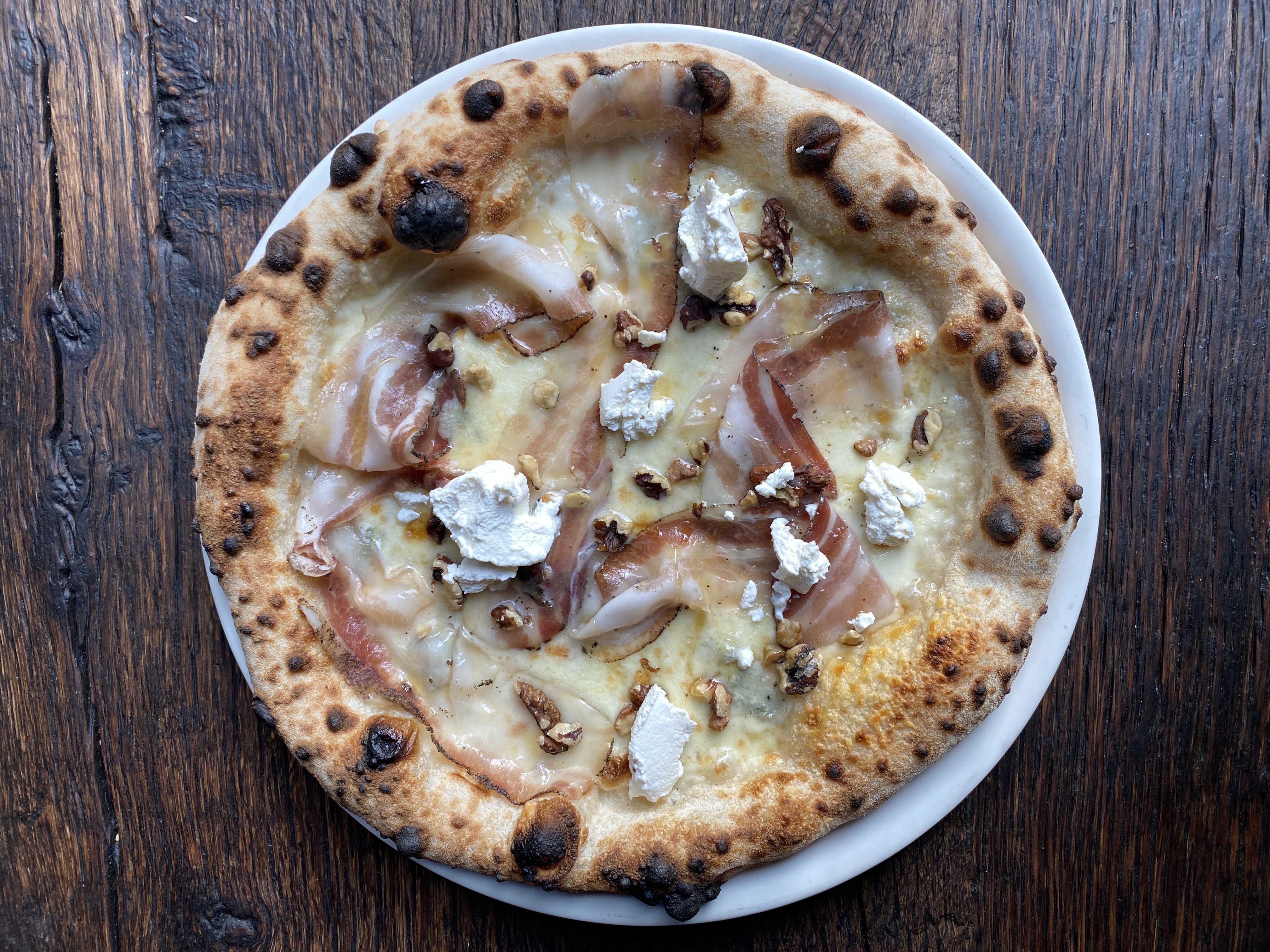 Seznam alergenůCrème ricotta, Fior di Latte, Gorgonzola, Speck, Noix, Miel et Basilic.