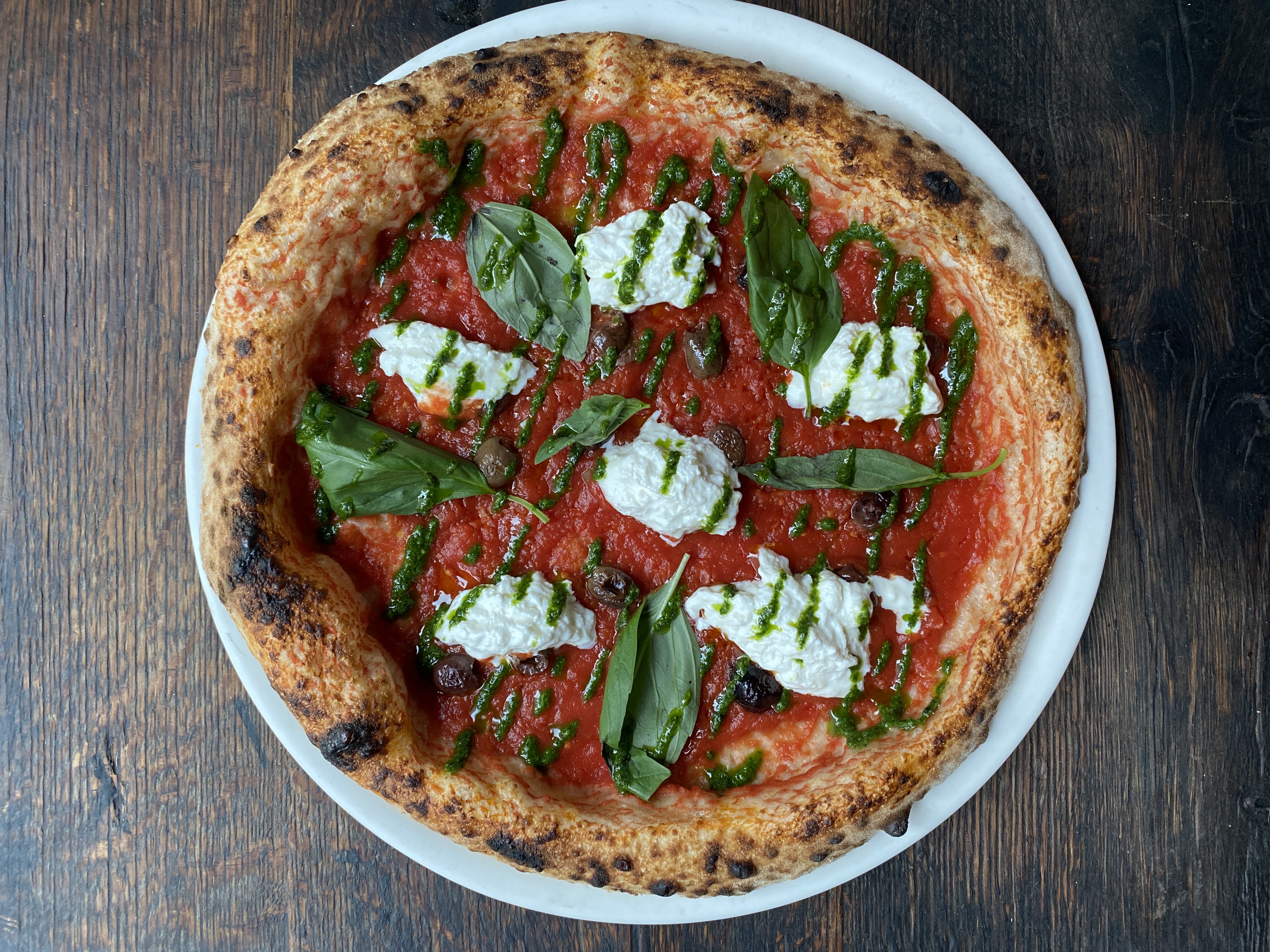 Seznam alergenůSauce tomate,San Daniele, Stracciatella, Pesto de basilic, olives noires et Basilic.