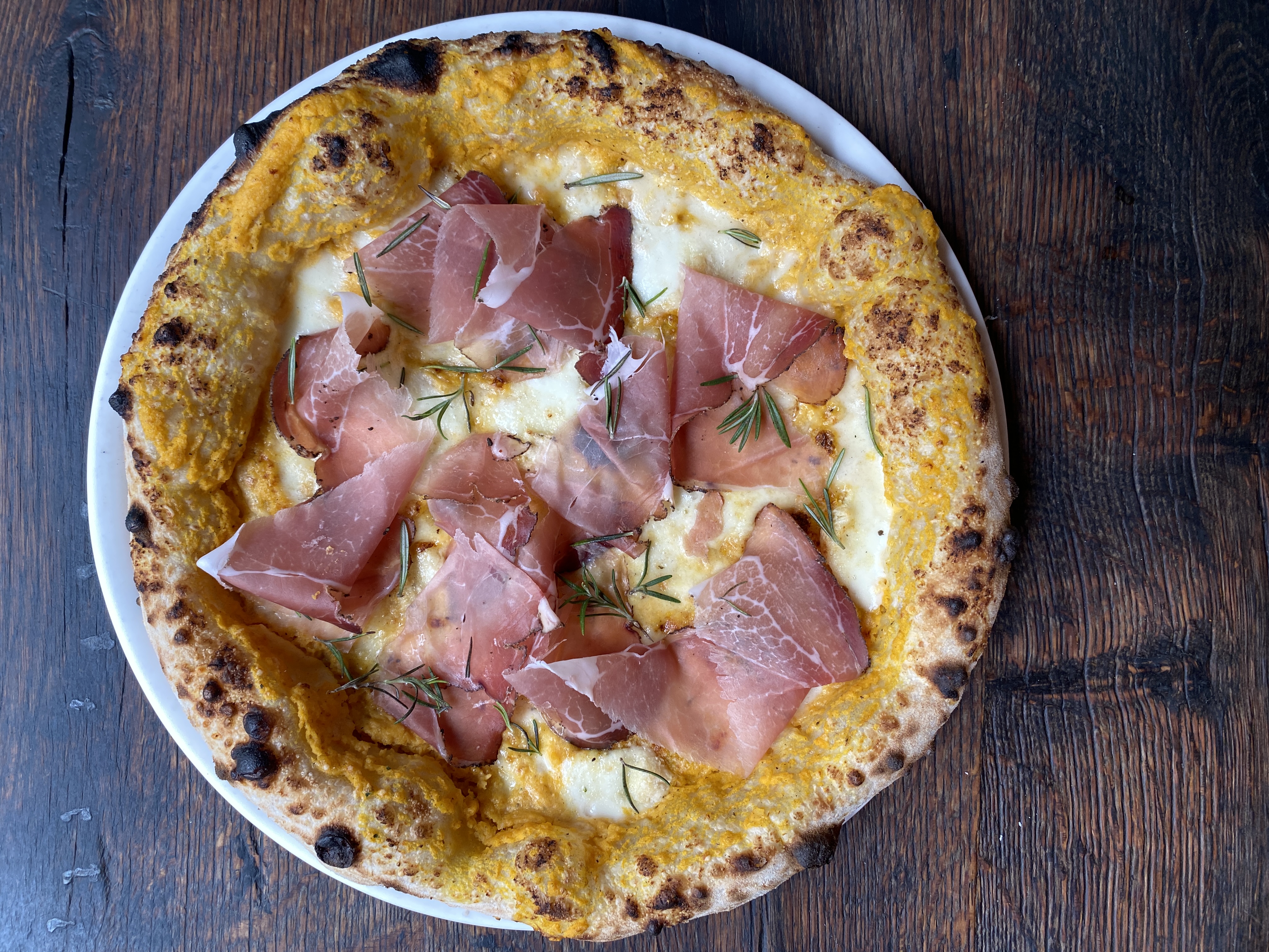 Liste des allergènesCrème de courge butternut, fior di latte, taleggio, speck, romarin.